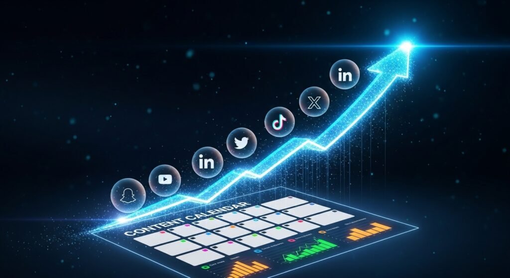 خطة نشر شهرية، جدولة تلقائية، وتنوع صيغ المحتوى حسب كل منصة